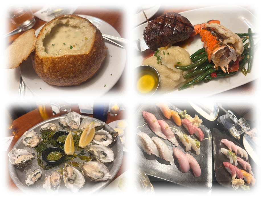 特に、名物のクラムチャウダーや新鮮な牡蠣、香ばしく焼き上げられたステーキは印象的でした。